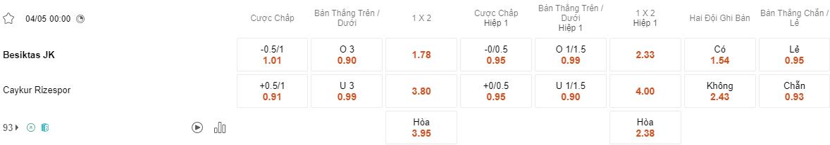 Trong 10 lần đụng độ với Rizespor gần nhất Besiktas đã dẫn trước ở hiệp 1 tới 7 trận, và chỉ thua 1 trận và hòa 2 trận còn lại. Trong khi đó, Rizespor lại tỏ ra thiếu ổn định khi thi đấu trên sân khách khi chỉ có được 12 điểm từ 16 trận đấu. Cửa cược của họ cũng đã khiến bet thủ ôm hận trong 5/6 lần mở kèo hiệp 1 trên sân khách gần đây.