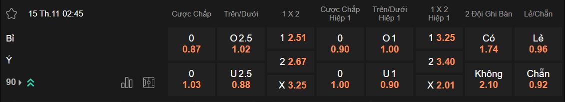 Bỉ luôn thủng lưới ngay trong hiệp 1 ở cả 4 trận đã chơi tại Nations League mùa này. Ở trận gặp Ý, họ thậm chí thủng lưới đến 2 bàn ngay ở 45 phút đầu. Đáng chú ý, đoàn quân áo thiên thanh cũng ghi bàn ngay ở hiệp 1 ở cả 4 trận gần nhất tham dự. Với tỷ lệ tài xỉu hiệp 1 đang là 1, đầu tư vào cửa Tài là phương án rất hợp lý.
