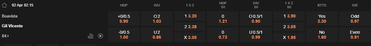 Soi kèo hiệp 1 Boavista vs Gil Vicente