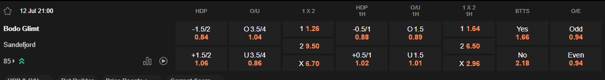 Soi kèo hiệp 1 Bodo Glimt vs Sandefjord