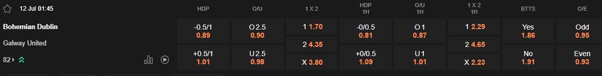 Bohemian thường nhập cuộc rất chủ động trên sân nhà. Trong 4 trận gần nhất tại Dalymount Park, họ có tới 3 trận kết thúc hiệp một với lợi thế dẫn bàn. Hàng công có sự ăn ý tốt giữa các tuyến, cộng với khả năng pressing tầm cao giúp Bohemian dễ dàng kiểm soát thế trận từ sớm. Trong khi đó, Galway lại thường xuyên gặp vấn đề trong giai đoạn nhập cuộc. Họ để thủng lưới trong hiệp 1 ở 3/4 trận gần nhất – một con số đáng lo ngại khi phải đối đầu với đội chủ nhà đang có phong độ cao. Với tất cả các yếu tố trên, Bohemian thắng hiệp 1 là kịch bản rất dễ xảy ra.