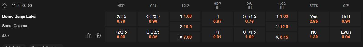 Đáng chú ý, Santa Coloma vốn thường xuyên dừng bước rất sớm ở các vòng loại cúp châu Âu. Khi phải đối đầu với những đội bóng đến từ các nền bóng đá trung bình khá như Bosnia, đại diện Andorra gần như không có cửa tạo bất ngờ. Với sự vượt trội về lực lượng, phong độ và đặc biệt là lợi thế sân bãi, Borac hoàn toàn có thể giành chiến thắng cách biệt và vượt kèo châu Á, dù mức chấp có thể lên đến -2.0.