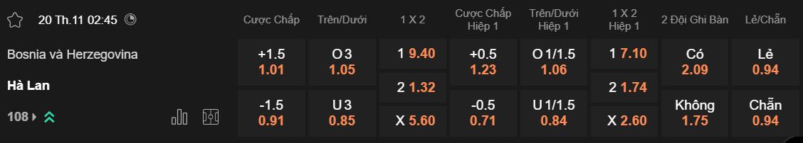 Soi kèo hiệp 1 Bosnia vs Hà Lan