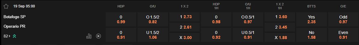 Ở chiều ngược lại, Operario đang là một trong những đội bóng tạo dựng được sự tin tưởng. Đặc biệt là với giới đầu tư khi bất bại trong 4 trận gần nhất, trong đó có 3 lần thắng kèo châu Á. Đặc biệt, họ từng đánh bại Botafogo SP với tỷ số đậm 3-0 trong lần chạm trán gần nhất. Qua đó cho thấy sự chênh lệch đáng kể về chất lượng thi đấu và cách vận hành lối chơi của hai đội.