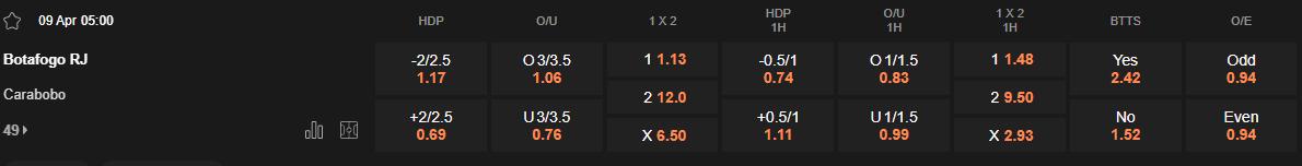 Soi kèo hiệp 1 Botafogo vs Carabobo