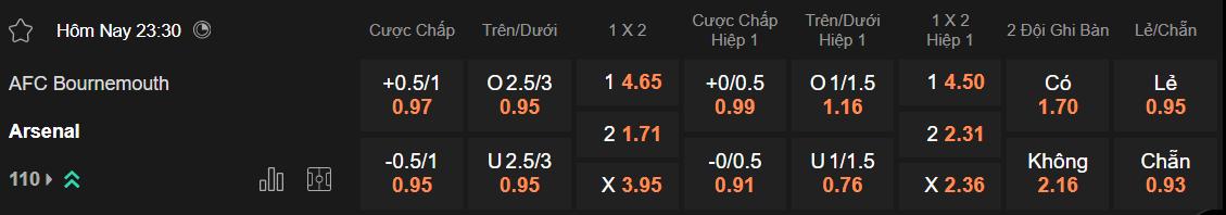 Nhà cái châu Á hôm nay đang đặt Arsenal ở cửa trên và nhận mức chấp là 3/4. Như vậy, thắng lợi với cách biệt 1 bàn là đủ để họ giúp các nhà đầu tư có lợi nhuận. Căn cứ vào tình hình hiện tại, khả năng giành 3 điểm của đội khách rõ ràng rất cao. Bournemouth được đá sân nhà nhưng chỉ giành vỏn vẹn 1 thắng lợi tại đây kể từ đầu mùa. Thêm vào đó, họ cũng toàn thua ở 6 lần gần nhất gặp Arsenal.