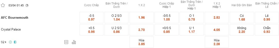 Soi kèo châu Á Bournemouth vs Crystal Palace