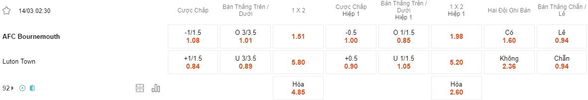 Soi kèo hiệp 1 Bournemouth vs Luton