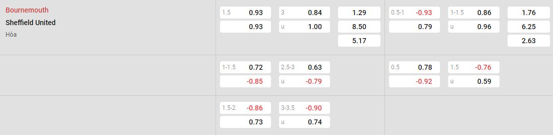 Soi kèo Châu Á Bournemouth vs Sheffield United