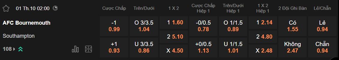 Soi kèo Bournemouth vs Southampton ngày 1/10