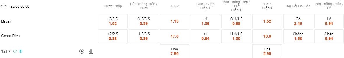 Soi kèo châu Á Brazil vs Costa Rica