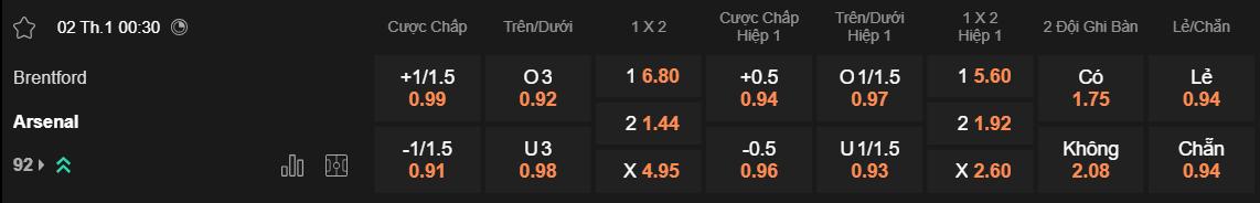 Soi kèo châu Á Brentford vs Arsenal