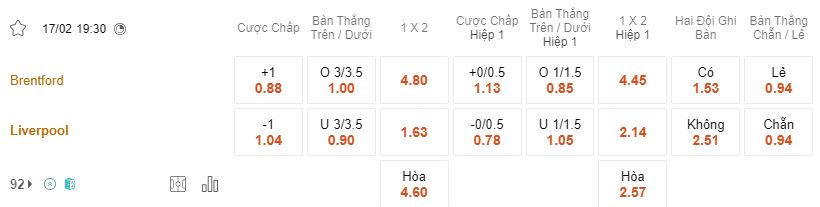 Soi kèo châu Á Brentford vs Liverpool