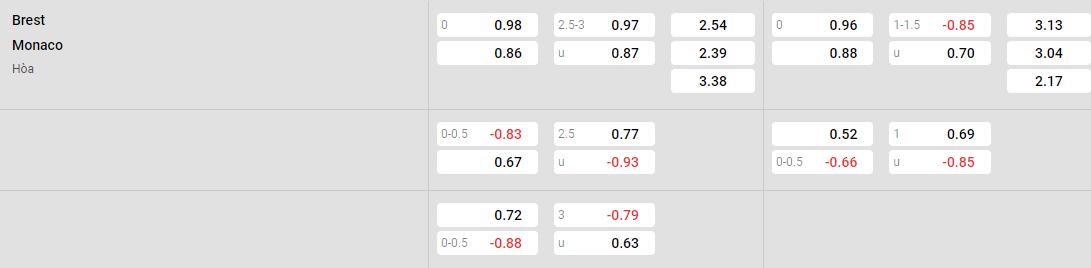 Chủ nhà Brest đang có phong độ thi đấu thiếu ổn định trong thời gian gần đây. Theo thống kê cho thấy, sau 6 trận ra quân gần nhất, họ chỉ giành được 2 chiến thắng. Được chơi trên sân nhà, tuy nhiên, phải tiếp đón các vị khách Monaco, đây thực sự là một thử thách khó khăn. Do đó, các chuyên gia đang đánh giá cao Monaco hơn trong trận kèo này.