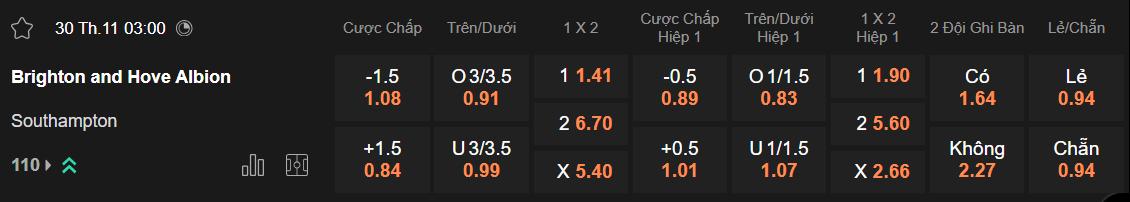 Với tình hình hiện tại, Brighton hoàn toàn có thể là bên mở tỷ số và duy trì được thế dẫn bàn khi hiệp 1 khép lại. Trong 6 trận gần nhất tham dự, Mòng biển có tới 4 trận làm được điều trên. Hai cái tên đủ sức khiến họ không thể có lợi thế khi 45 phút đầu kết thúc là Liverpool và Man City. Với Southampton, 3/4 chuyến làm khách gần nhất chứng kiến họ rơi vào thế phải bám đuổi khi hiệp 1 kết thúc.