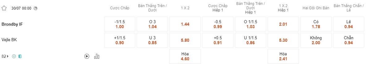 Trong trận thắng 6-0 trước KF Llapi ở Europa Conference League, Brondby đã ghi tới 4 bàn ngay trong hiệp 1. Qua đó cho thấy khả năng áp đảo đối thủ từ đầu trận. Ngược lại, Vejle đã phải nhận 3 bàn thua trong trận đấu với Randers FC. Điều này cho thấy Vejle dễ bị tổn thương khi đối đầu với những đội bóng có sức tấn công mạnh mẽ như Brondby. Với lợi thế sân nhà và phong độ tấn công ấn tượng từ đầu trận, Brondby nhiều khả năng sẽ chiếm ưu thế sớm.