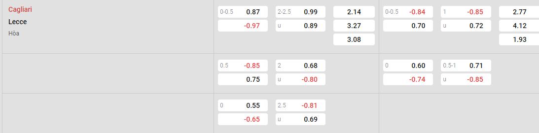 Soi kèo hiệp 1 Cagliari vs Lecce
