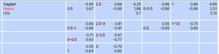 Soi kèo hiệp 1 Cagliari vs Napoli