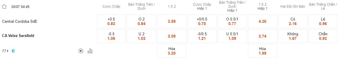 Soi kèo tài xỉu Central Cordoba vs Velez