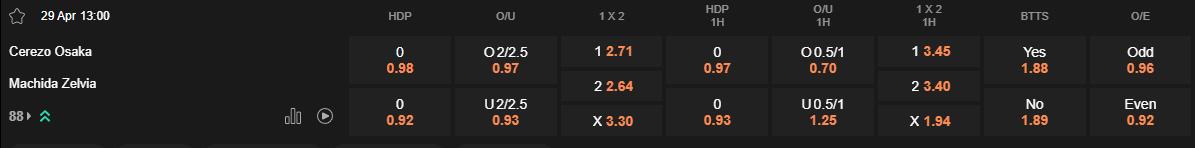 Machida Zelvia thường nhập cuộc khá chủ động, dù tỷ lệ cầm bóng không cao nhưng họ biết cách tận dụng những cơ hội có được. Trong 4 chiến thắng gần nhất của họ, đa số bàn thắng đều được ghi ngay trong hiệp 1. Qua đó giúp đội bóng của HLV Go Kuroda chiếm lợi thế tâm lý sớm. Trong khi đó, Cerezo Osaka có thói quen nhập cuộc chậm chạp và dễ bị khai thác trong khoảng 20 phút đầu. Với tâm lý đang bất ổn do chuỗi trận kém cỏi, Cerezo Osaka nhiều khả năng sẽ tiếp tục mắc sai lầm sớm. Vì vậy, chọn Machida Zelvia thắng hiệp 1 là phương án đầu tư sáng suốt.