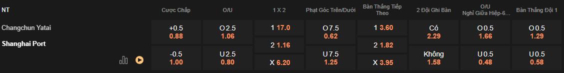 Tỷ lệ kèo Changchun Yatai vs Shanghai Port