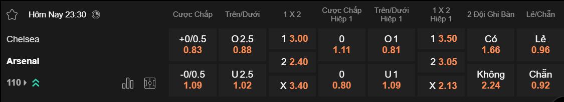 Arsenal đã không ghi bàn trên sân khách ở 3/4 trận gần nhất. Cũng ở 4 trận này, họ thủng lưới 2 bàn ở 45 phút đầu. Về phía Chelsea, họ ghi 1 bàn và thủng lưới 1 bàn trong hiệp 1 ở 4 trận gần nhất tại Ngoại hạng Anh. Những con số thống kê rõ ràng đều đang ủng hộ khả năng cửa Xỉu hiệp 1 về. Nhất là khi, tỷ lệ tài xỉu hiệp 1 đang là 1.