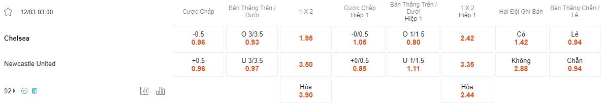 Soi kèo Chelsea vs Newcastle lúc 3h00 ngày 12/3/2024