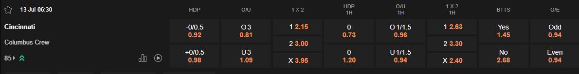 Soi kèo châu Á Cincinnati vs Columbus Crew
