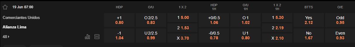 Dự đoán tỷ số Comerciantes Unidos vs Alianza Lima
