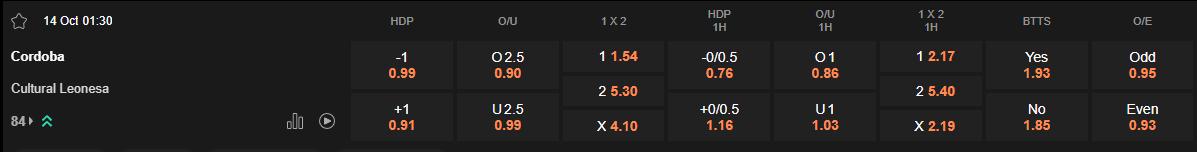 Ở chiều ngược lại, Cultural Leonesa đang có dấu hiệu chững lại. Sau giai đoạn khởi đầu khá ấn tượng, họ chỉ thắng 1/3 trận gần nhất. Đồng thời hàng thủ bắt đầu bộc lộ những khoảng trống nguy hiểm. Đáng chú ý hơn, Cordoba toàn thắng trong 2 lần đối đầu gần nhất giữa hai đội, với tổng tỷ số lên tới 5-0. Sự vượt trội cả về lối chơi lẫn đẳng cấp giúp Cordoba được giới chuyên môn đánh giá rất cao ở kèo châu Á lần này.