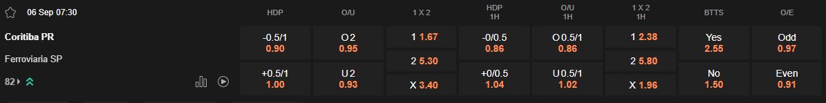 Soi kèo hiệp 1 Coritiba vs Ferroviaria