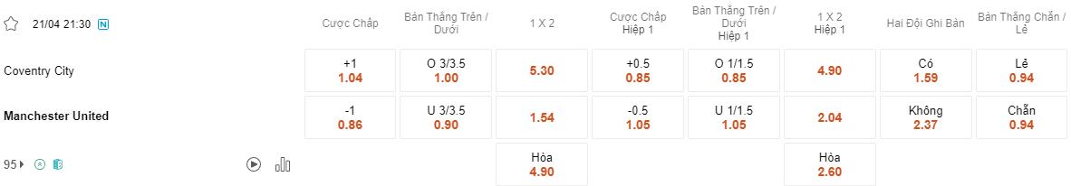 Soi kèo Coventry vs MU lúc 21h30 ngày 21/4/2024