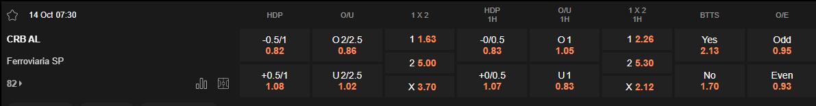 Soi kèo hiệp 1 CRB vs Ferroviaria