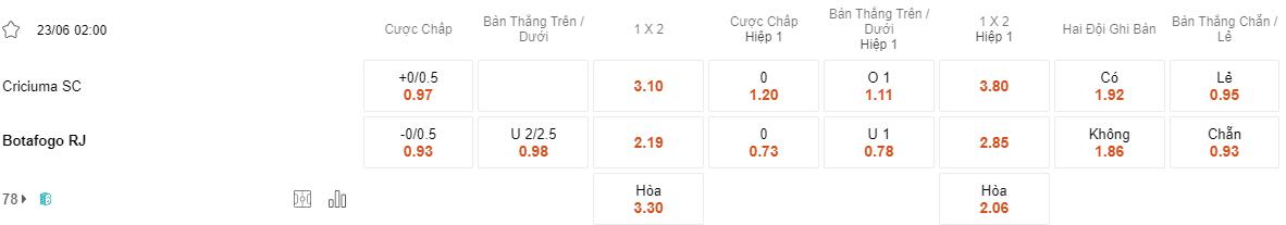 Soi kèo hiệp 1 Criciuma vs Botafogo