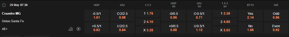 Soi kèo châu Á Cruzeiro vs Union Santa Fe