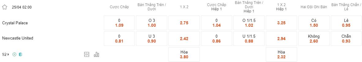 Soi kèo hiệp 1 Crystal Palace vs Newcastle