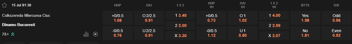 Soi kèo hiệp 1 Csikszereda vs Dinamo Bucuresti