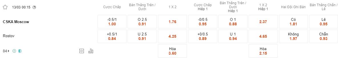Soi kèo hiệp 1 CSKA Moscow vs Rostov
