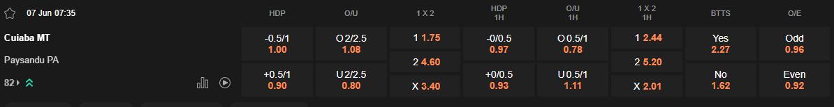 Cuiaba có cơ sở để tự tin khi bước vào trận đấu này, bởi họ đã thắng kèo châu Á trong 3/4 lần gần nhất chạm trán với Paysandu. Lần gần nhất đối đầu đối thủ này, Cuiaba cũng đã giành trọn 3 điểm với lối chơi vượt trội và kiểm soát hoàn toàn thế trận.