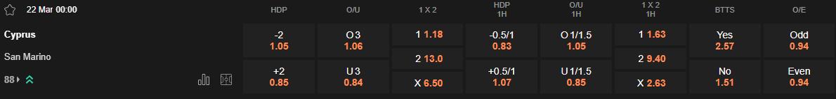 San Marino không chỉ yếu kém về mặt chuyên môn mà còn có xu hướng thủng lưới sớm trong các trận đấu gặp đối thủ mạnh hơn. Trong 3 trận gần nhất, họ đều để thủng lưới ngay trong hiệp 1, kể cả là trong chiến thắng trước Liechtenstein. Cyprus có lợi thế sân nhà và chắc chắn sẽ chủ động tấn công ngay từ đầu để sớm định đoạt trận đấu. Ở lần đối đầu gần nhất, họ cũng đã dẫn trước San Marino ngay trong 45 phút đầu tiên.