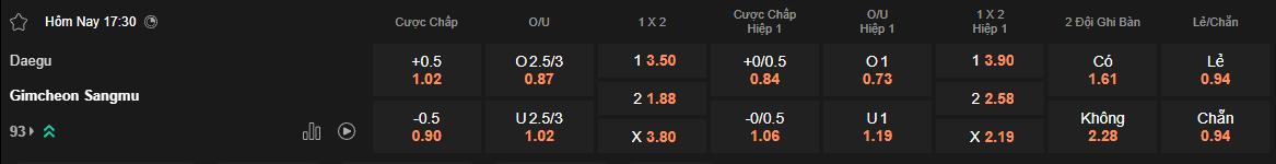 Soi kèo hiệp 1 Daegu vs Gimcheon Sangmu