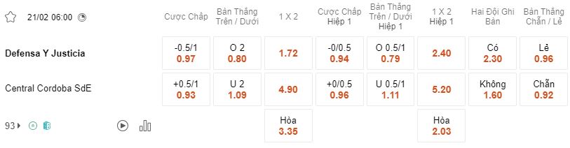 Soi kèo châu Á Defensa Justicia vs Central Cordoba