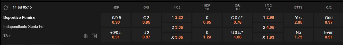 Soi kèo hiệp 1 Deportivo Pereira vs Santa Fe
