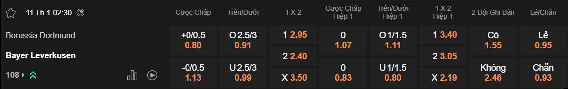 Trận đấu này hứa hẹn sẽ diễn ra sôi động ngay từ hiệp 1. Dortmund tuy hiện tại bị đánh giá thấp hơn nhưng quá khứ lại đang đứng về phía họ. Cụ thể, tập thể này đã luôn ghi bàn ngay trong hiệp 1 ở 6/7 lần gần nhất chạm trán đối thủ. Về phía Leverkusen, họ luôn có ít nhất 1 bàn thắng trong 45 phút đầu ở 6/8 chuyến hành quân gần nhất. Khả năng cửa Tài hiệp 1 nổ rất cao.
