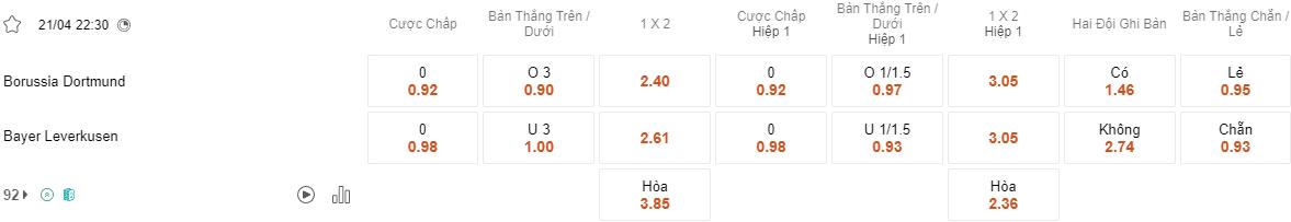 Tỷ lệ kèo Dortmund vs Leverkusen