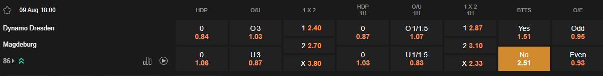 Dresden thường nhập cuộc chủ động trên sân nhà. Với mục tiêu giành điểm đầu tiên sau trận thua đáng tiếc, họ sẽ không ngần ngại đẩy cao đội hình từ sớm. Ngược lại, Magdeburg thường khởi đầu chậm và chưa có sự gắn kết tốt giữa các tuyến, điều đã được thể hiện rõ trong thất bại ở vòng đầu. Ở mùa trước và cả giai đoạn tiền mùa giải, Dresden nhiều lần dẫn trước trong hiệp 1 khi gặp các đối thủ ngang cơ. Được cổ vũ bởi khán giả nhà, họ hoàn toàn có thể tạo lợi thế sớm để kiểm soát thế trận trong phần còn lại.