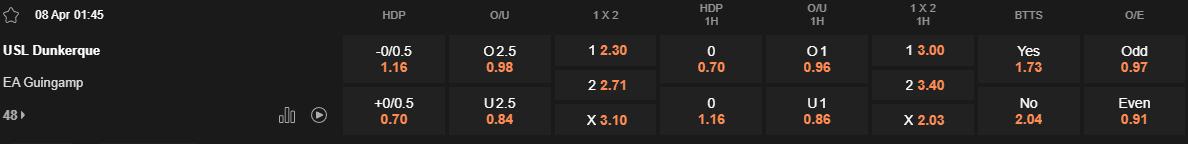 Soi kèo hiệp 1 Dunkerque vs Guingamp
