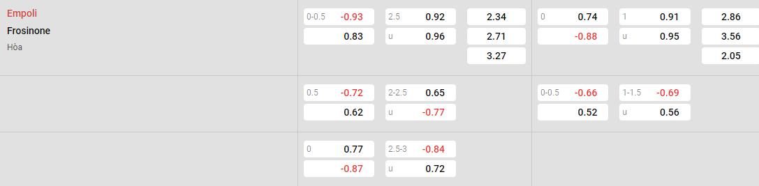 Soi kèo hiệp 1 Empoli vs Frosinone