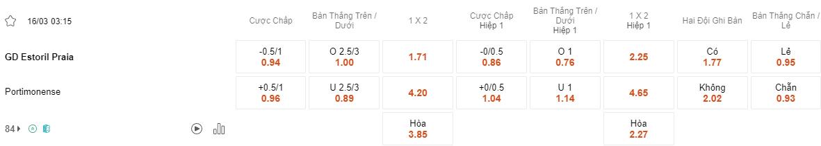 Soi kèo hiệp 1 Estoril vs Portimonense