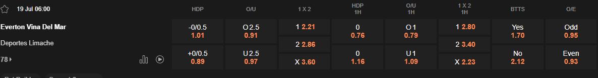 Đội chủ sân Viña del Mar đang trải qua giai đoạn đầy bất ổn khi thua kèo 3/4 trận gần nhất. Trong đó bao gồm những trận thua trước các đối thủ bị đánh giá yếu hơn. Lối chơi của Everton tỏ ra đơn điệu, dễ bắt bài và phụ thuộc quá nhiều vào các tình huống bóng bổng. Trong tình cảnh đó, Limache với tâm lý thoải mái, xứng đáng được đặt niềm tin ở kèo châu Á.